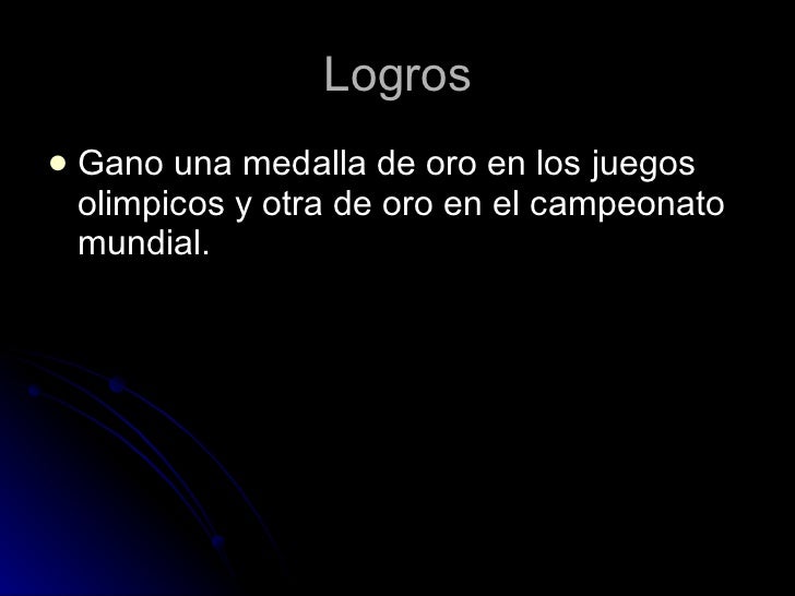 - 4. Logros <ul><li>Gano una medalla de oro en los juegos olimpicos y otra de oro en el campeonato mundial. </li></ul>